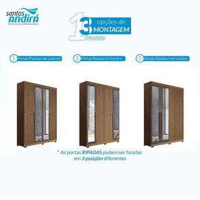 Guarda Roupa Casal Ripado 4 portas Buriti Jatobá Grafite com espelho e pés Acetinado - Santos Andirá