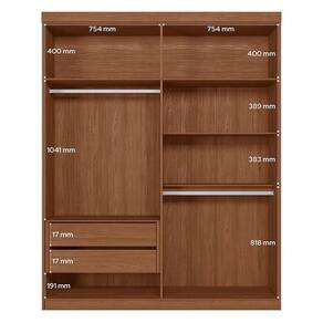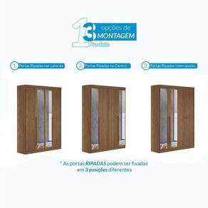 Guarda Roupa Casal Ripado 4 portas Buriti Jatobá com espelho Acetinado - Santos Andirá