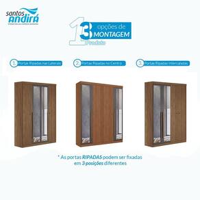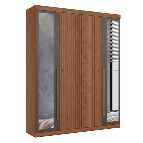 Guarda Roupa Casal Ripado 4 portas Buriti Jatobá Grafite com espelho Acetinado - Santos Andirá