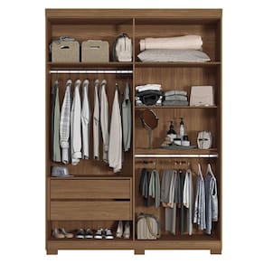 Guarda Roupa Casal Ripado 4 portas Buriti Jatobá com pés: O Ripado Buriti 4 portas é para quem quer um guarda-roupa com presença e organização. Com portas ripadas, prateleiras amplas, gavetas resistentes e cabideiros de qualidade, ele guarda tudo com estilo. Acabamento suave ao toque e produção sustentável fazem dele uma escolha confiável.