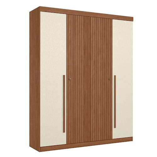 Guarda Roupa Casal Ripado 4 portas Buriti Jatobá Areia Acetinado - Santos Andirá