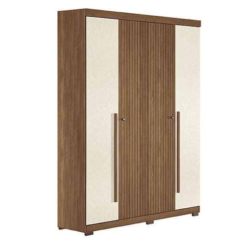 Guarda Roupa Casal Ripado 4 portas Buriti Jatobá Areia com pés Acetinado - Santos Andirá