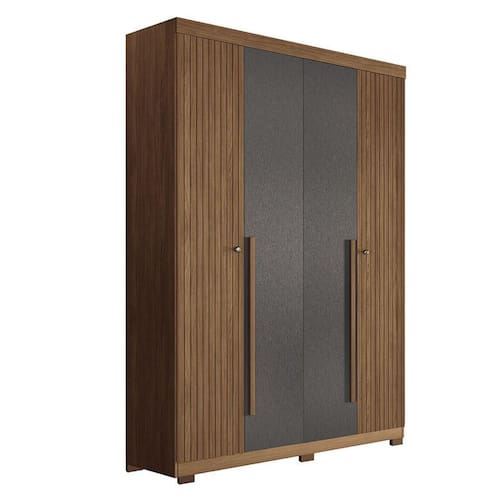 Guarda Roupa Casal Ripado 4 portas Buriti Jatobá Grafite com pés Acetinado - Santos Andirá