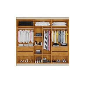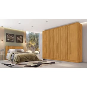 Particularidades do guarda-roupa: Características: - Ripado em MDF; - 100% MDF, chapas de 15mm; - Gavetas com corrediças telescópicas; - Cabideiros em alumínio; - Modulado para roupas longas; - Dobradiças modernas e reforçadas;