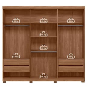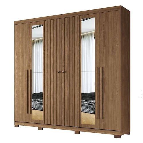 Guarda Roupa Casal Ripado 6 portas Buriti Jatobá com espelho e pés Acetinado - Santos Andirá
