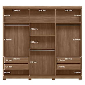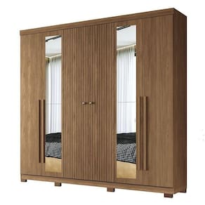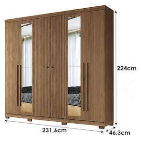 Guarda Roupa Casal Ripado 6 portas Buriti Jatobá com espelho e pés Acetinado - Santos Andirá