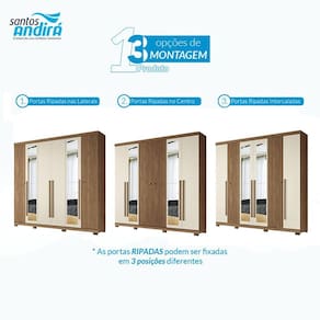 Guarda Roupa Casal Ripado 6 portas Buriti Jatobá Areia com espelho e pés Acetinado - Santos Andirá
