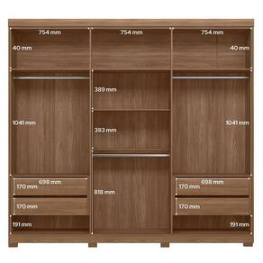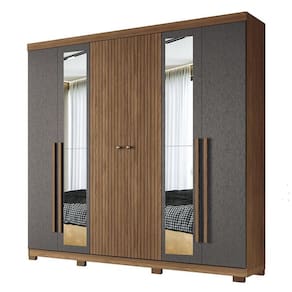 Guarda Roupa Casal Ripado 6 portas Buriti Jatobá Grafite com espelho e pés Acetinado - Santos Andirá
