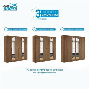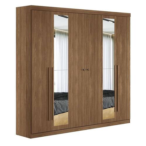 Guarda Roupa Casal Ripado 6 portas Buriti Jatobá com espelho Acetinado - Santos Andirá