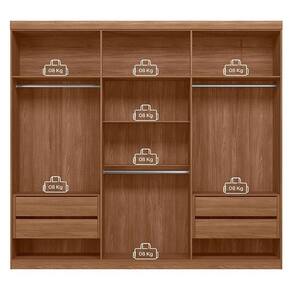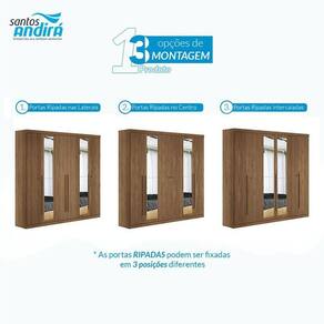 Guarda Roupa Casal Ripado 6 portas Buriti Jatobá com espelho Acetinado - Santos Andirá