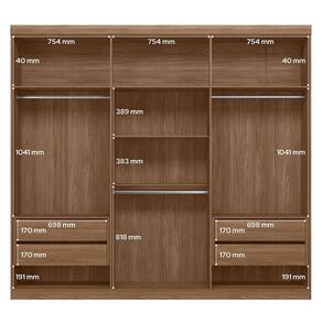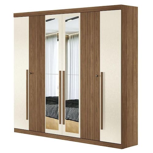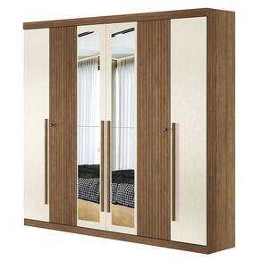 Guarda Roupa Casal Ripado 6 portas Buriti Jatobá Areia com espelho Acetinado - Santos Andirá