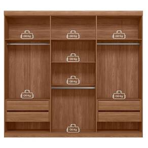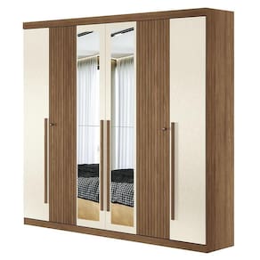 Guarda Roupa Casal Ripado 6 portas Buriti Jatobá Areia com espelho Acetinado - Santos Andirá