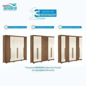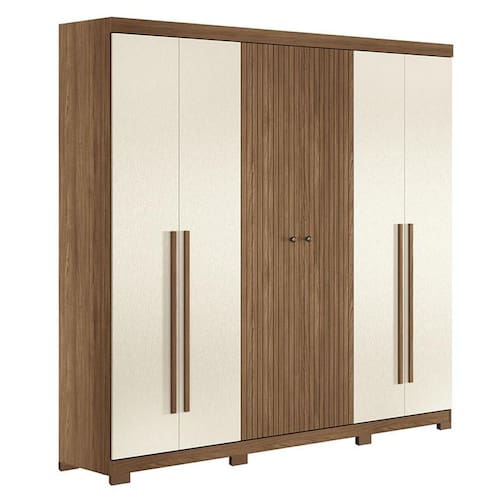 Guarda Roupa Casal Ripado 6 portas Buriti Jatobá Areia com pés Acetinado - Santos Andirá
