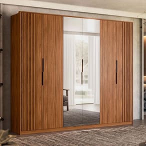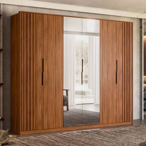 Guarda Roupa Casal Ripado Atrice Ambiente 6 Portas Nogueira Touch com Espelho Demóbile – Demartêz