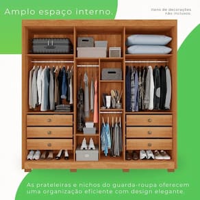 Este lindo Guarda Roupa Casal 6 Portas 6 Gavetas Granada Sallêto é um produto de excelente qualidade, funcionalidade e beleza, ele é a melhor opção para deixar seu dormitório muito mais arrumado e convidativo. Com corrediças telescópicas que permitem uma abertura total das gavetas, divisões internas ele e ela que oferecem praticidade e organização, gavetas espaçosas para aproveitar e guardar tudo que precisa e puxadores de madeira que garantem maior durabilidade. Portas ripadas para você personalizar de sua preferência no momento da montagem. Se encaixa facilmente em vários estilos de decoração com cores super atuais. Aproveite, você merece!