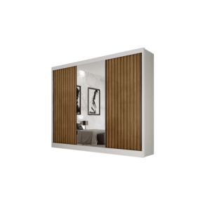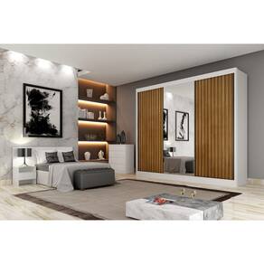 Guarda Roupa Casal Ripado com Espelho 3 Portas 8 Gavetas - Canastra-Branco - Móveis Novo Horizonte