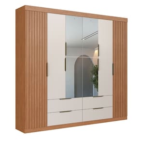 Guarda Roupa Casal Ripado com Espelho 6 Portas 4 Gavetas Vegas Faimec - Palha
