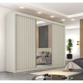 Guarda Roupa Casal Ripado com Espelho - Athenas-Off White - Móveis Europa
