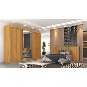 Guarda Roupa Casal Ripado com Espelho - Athenas - Móveis Europa