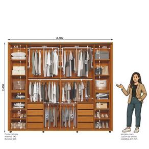 Características: 8 Espelhos de 886x566mm 8 Gavetas com corrediças telescópicas 2 Portas de Correr 12 Prateleiras Cabideiros retrateis com pistão a gás Estrutura 100 MDF 15mm e 25mm Fixação com minifix e parafusos Guia com amortecimento Perfil anti empenamento em aço Pés em poliestireno Peso total suportado 188Kg Portas deslizantes com trilhos em alumínio Puxadores e cabideiros em alumínio