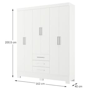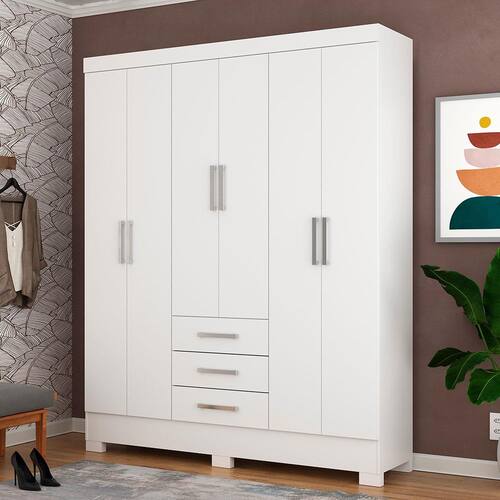 E mais, ele ainda conta com portas de bater, gavetas amplas equipadas com corrediças metálicas que permitem maior facilidade no abrir e fechar. E mais, o seu conjunto de prateleiras é espaçoso e dinâmico, o cabideiro é resistente e o maleiro oferece aquele espaço a mais que você tanto deseja.