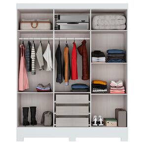 E mais, ele ainda conta com portas de bater, dobradiças metálicas, gavetas amplas equipadas com corrediças metálicas que permitem maior facilidade no abrir e fechar. E mais, o seu conjunto de prateleiras é espaçoso e dinâmico, o cabideiro é resistente e o maleiro oferece aquele espaço a mais que você tanto deseja.