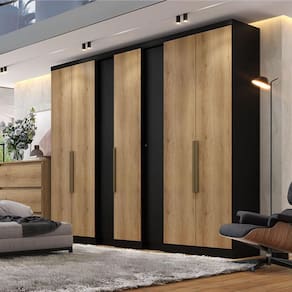 O Guarda Roupa Casal Selecto une sofisticação, espaço e praticidade para transformar o quarto em um ambiente organizado e aconchegante. Seu design imponente combina o tom Rústico com o elegante Preto, criando um visual moderno e versátil que harmoniza facilmente com diferentes estilos de decoração. Com 7 portas, o Selecto oferece excelente capacidade interna, ideal para casais que precisam de mais espaço para manter roupas, calçados e acessórios bem organizados. Conta com cabideiros, prateleiras e nichos estrategicamente distribuídos, garantindo funcionalidade e praticidade no dia a dia.