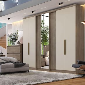 O Guarda Roupa Casal Selecto Glass une sofisticação, espaço e praticidade para transformar o quarto em um ambiente organizado e aconchegante. Seu design imponente combina o tom Rústico com o elegante Off White, criando um visual moderno e versátil que harmoniza facilmente com diferentes estilos de decoração. Com 7 portas, o Selecto oferece excelente capacidade interna, ideal para casais que precisam de mais espaço para manter roupas, calçados e acessórios bem organizados. Conta com cabideiros, prateleiras e nichos estrategicamente distribuídos, garantindo funcionalidade e praticidade no dia a dia.