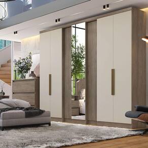 Guarda Roupa Casal Selecto Glass 7 Portas Rústico Off White Acetinado - THB