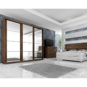 Guarda Roupa Sevilha | Roupeiro com 3 portas de correr com trilho em alumínio e sistema soft de rolagem que garante um melhor deslize, possui 6 gavetas internas com corrediças metálicas. As portas possuem encabeçamento com moldura de 25mm e assim garantem o não empenamento das mesmas. Feito totalmente em MDP de 15mm. Possui acabamento Touch Alto-Relevo ou Alto Brilho UV e Semibrilho parte interna. Esse é o Guarda Roupa mais procurado para quarto de casal. Tem um design compacto que ao mesmo tempo atende muito bem as reais necessidades de uma ou duas pessoas por ter o sistema ELE ELA, ou seja, ambos lados do Guarda Roupa são idênticos facilitando a divisão de espaço para duas pessoas. Possui dois porta joias no meio e uma composição de espelhos na porta central que deixam o produto glamouroso, este sim é o seu maior diferencial. Além desses detalhes é de fácil montagem.