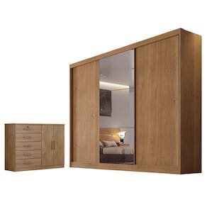 Guarda Roupa Casal Sonetto com Espelho e Cômoda Seul Cumaru 23 - Novo Horizonte