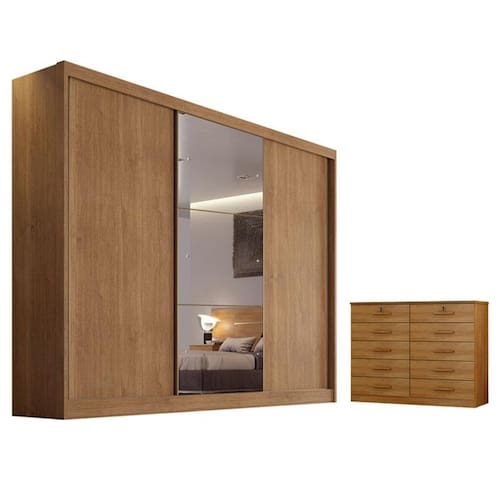 Guarda Roupa Casal Sonetto com Espelho e Gaveteiro Milão com Chave Cumaru 23 - Novo Horizonte