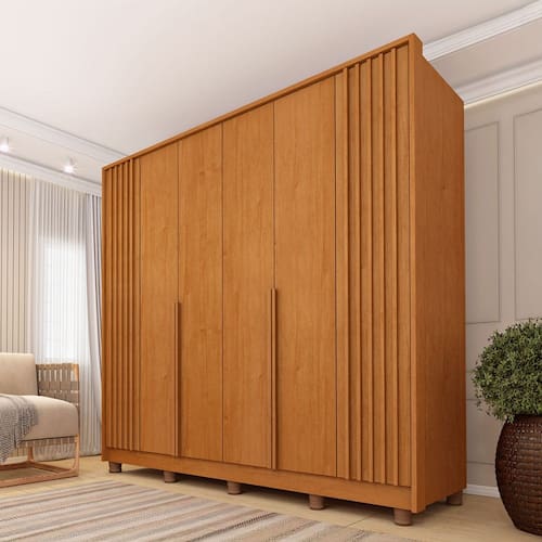O(a) Guarda-Roupa Casal Taiwan 6 Portas 4 Gavetas Ripado Cinamomo - Pnr Móveis é produzido em MDP na escala de brilho Fosco, e possui um grau de dificuldade de montagem: Médio.
