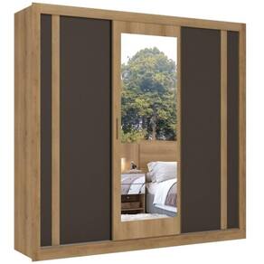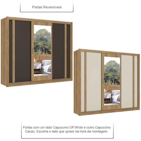 Guarda-Roupa Casal THB Ibiza Glass, 3 Portas, Cappuccino Off White/Cacau com Espelho