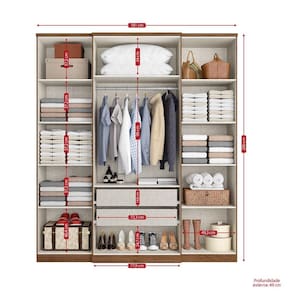 ***Não fique com dúvidas na hora de comprar seu Roupeiro. Confira a dica da taQi: Os tamanhos dos roupeiros evoluíram para proporcionar mais funcionalidade e segurança. Vale lembrar, que eles podem variar em suas dimensões de largura, altura e profundidade. Para garantir que o guarda-roupa encaixe-se perfeitamente em seu ambiente, recomendamos que você calcule em torno de 15 centímetros a mais da altura descrita do produto. Assim, possibilitando a montagem, garantindo que o roupeiro caberá na área destinada.