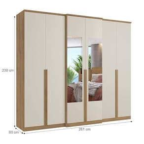 Roupeiro Casal 6 Portas THB Valência Glass, Cappuccino/Off White, 261 cm