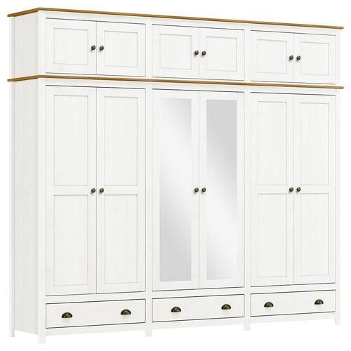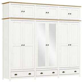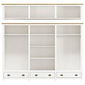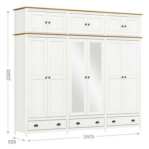 O Guarda-Roupa Casal Topázio 12 Portas e 3 Gavetas com Espelho da Finestra Móveis combina elegância, resistência e funcionalidade em um só móvel. Fabricado com estrutura em madeira maciça de pinus de reflorestamento, recebe acabamento refinado com pintura acetinada em verniz PU e UV, garantindo durabilidade e beleza por muito mais tempo. Com 12 portas, sendo as centrais com espelho, oferece amplo espaço para organização. As dobradiças com amortecimento proporcionam mais conforto e no uso diário. Conta ainda com prateleiras em madeira maciça que suportam até 10kg distribuídos, 3 gavetas com corrediças telescópicas para um deslizamento suave e cabideiros em alumínio com capacidade de até 8kg. Os puxadores metálicos em ouro envelhecido e os pés alongados em madeira maciça conferem um visual sofisticado e atemporal. Ideal para quem busca um guarda-roupa espaçoso, funcional e com design de alto padrão para o quarto do casal.