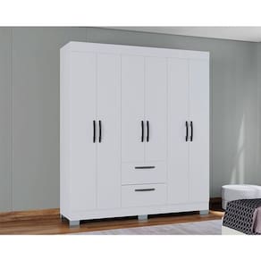 Guarda Roupa Casal Tóquio 6 Portas Branco Brilho - Poquema