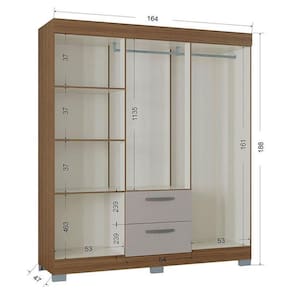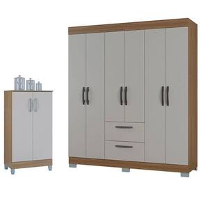 Guarda Roupa Casal Tóquio 6 Portas com Armário Multiuso 2 Portas Pequeno Castanho Off White - Poquema