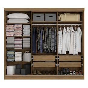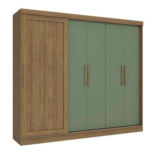 que tal o guarda-roupa tormaline? nada hor do que ter uma casa organizada e com tudo no lugar certo, né? conte com o guarda-roupa tormaline para te dar uma forcinha nessa missão. com 5 portas e 4 gavetas, ele é amplo e ótimo para atender a um casal, graças aos compartimentos ideias para armazenar peças de vestuário, roupas de cama, toalhas, acessórios ou mesmo caixas organizadoras. de estrutura tradicional, o modelo tem design contemporâneo simples de ser inserido na decoração, isso porque o acabamento amadeirado e a cor neutra são curingas e atemporais. com certeza, seu dormitório vai ficar lindo, além de muito funcional!