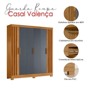 Guarda Roupa Casal Valença 6 Portas Freijó Cinza – Moval