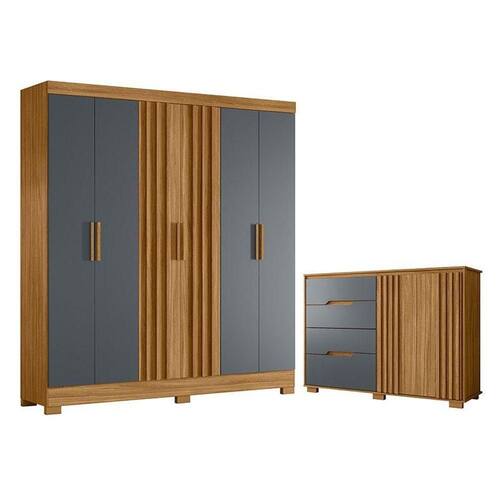Guarda Roupa Casal Valença e Cômoda Texas Freijó Cinza Moval