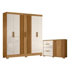 Guarda Roupa Casal Valença e Cômoda Texas Freijó Off White Moval