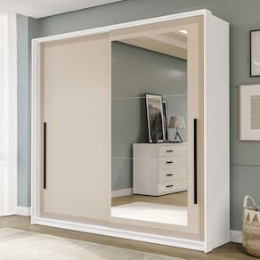 O(a) Guarda-Roupa Casal Valência 2 Portas 2 Gavetas com Espelho Branco/Creme - Politorno é produzido em MDF e MDP na escala de brilho Semi-Fosco, e possui um grau de dificuldade de montagem: Médio.