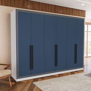 O(a) Guarda-Roupa Casal Valência 6 Portas 4 Gavetas Branco/Azul - Politorno é produzido em MDF e MDP na escala de brilho Semi-Fosco, e possui um grau de dificuldade de montagem: Médio.