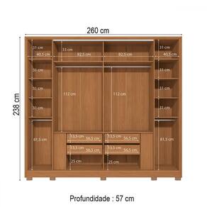 O(a) Guarda-Roupa Casal Vernet 6 Portas 4 Gavetas com Espelho Canela - Kappesberg é produzido em MDP na escala de brilho Fosco, e possui um grau de dificuldade de montagem: Médio.