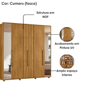 Guarda Roupa Casal Veronese 06 Portas Com Espelhos 230 Cm Cumaru Madetec Cumaru