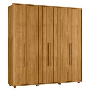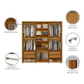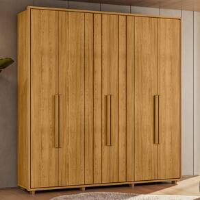 ESPECIFICAÇÕES: Estrutura em MDF Pintura UV 6 Portas Dobradiças metálicas de 35mm com sistema de amortecimento Ripado angular nas portas centrais Puxadores em MDF nas portas 4 Gavetas internas Corrediças telescópicas Cabideiros extensíveis Cabideiros de alumínio Interna com nichos e prateleiras Moldura envoltória de 25mm Pés em poliestireno de 50mm