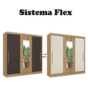Guarda Roupa Casal Vision Glass 3 Portas Capuccino Cacau Off White Acetinado - THB