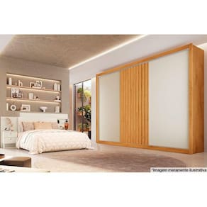 Guarda Roupa Casal Vitória c/6 Gavetas e 3 Portas de Correr Ripada Peroba/Off White/Peroba - Europa